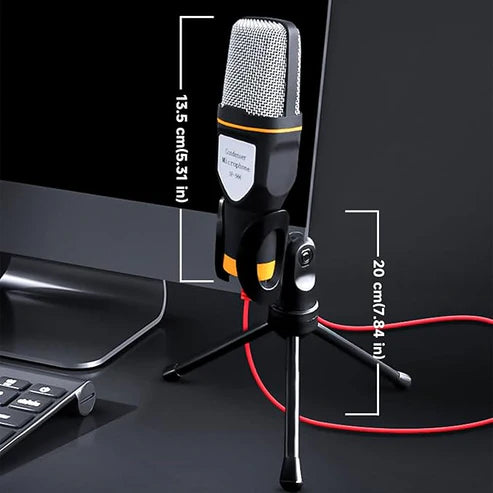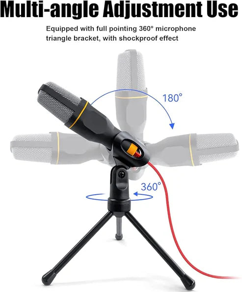 Compact plug‑and‑play condenser mic for PC/laptop use. Comes with a small desk stand and 3.5 mm audio jack, ideal for online chatting, Skype/Zoom calls, gaming, and basic vocals.
